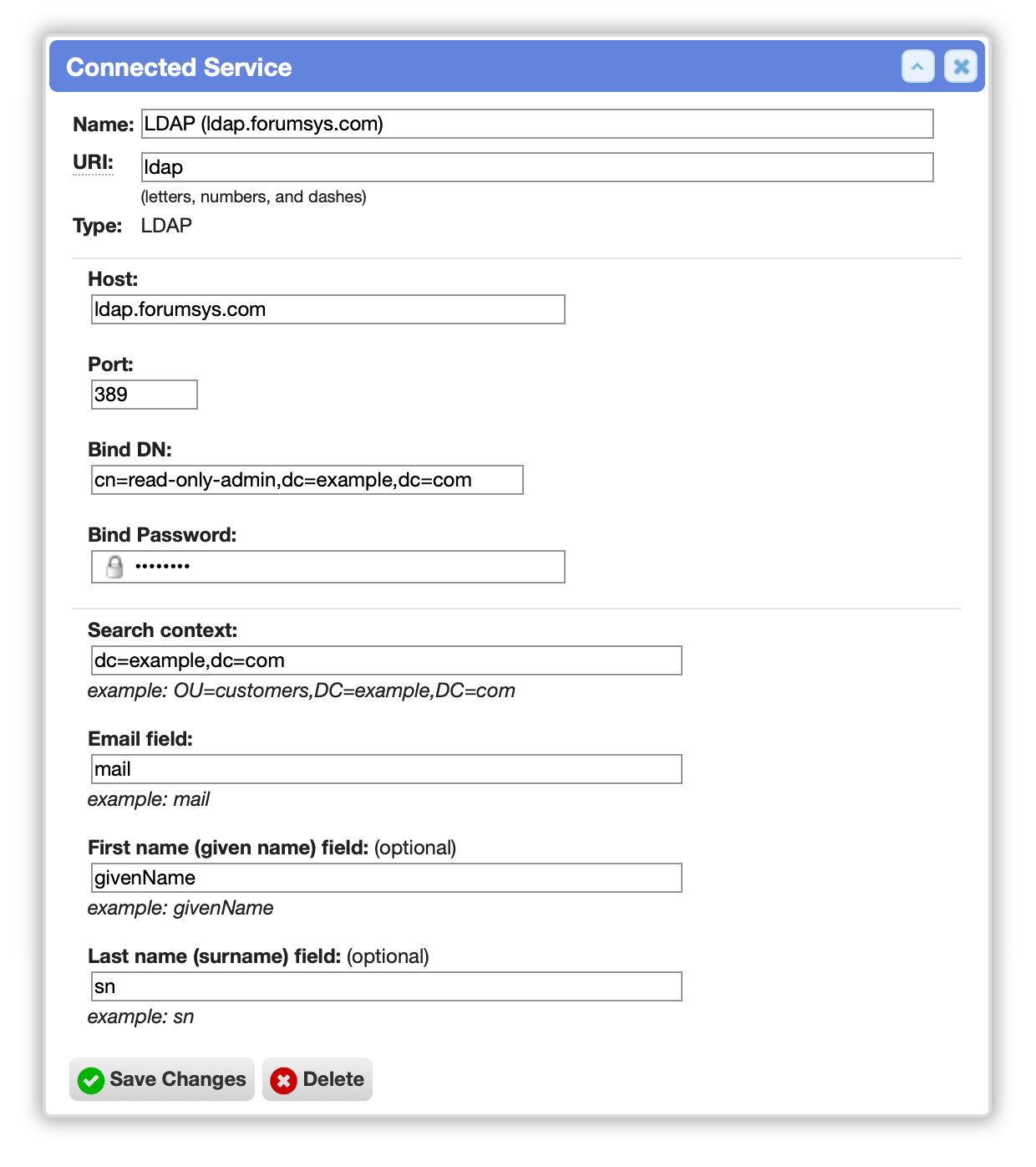 - Host: (your LDAP server host; e.g. ldap.example.com)