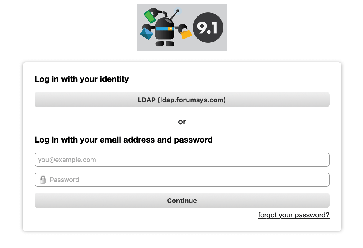 When LDAP is enabled as a single sign-on identity provider, a button will appear at the top of the login page.